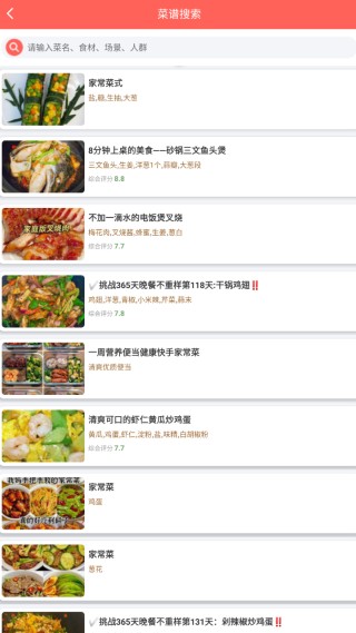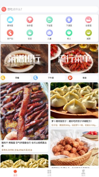 3、查找菜谱:进入软件首页,在搜索框输入菜品名称,或者在丰富分类中耐心浏览查找。
