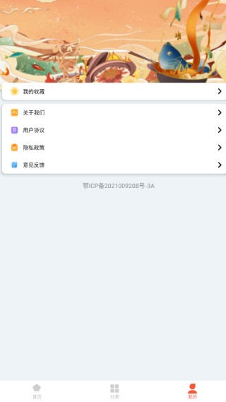 4、在“我的”模块,则能查看收藏,还能进行意见反馈,了解服务协议。