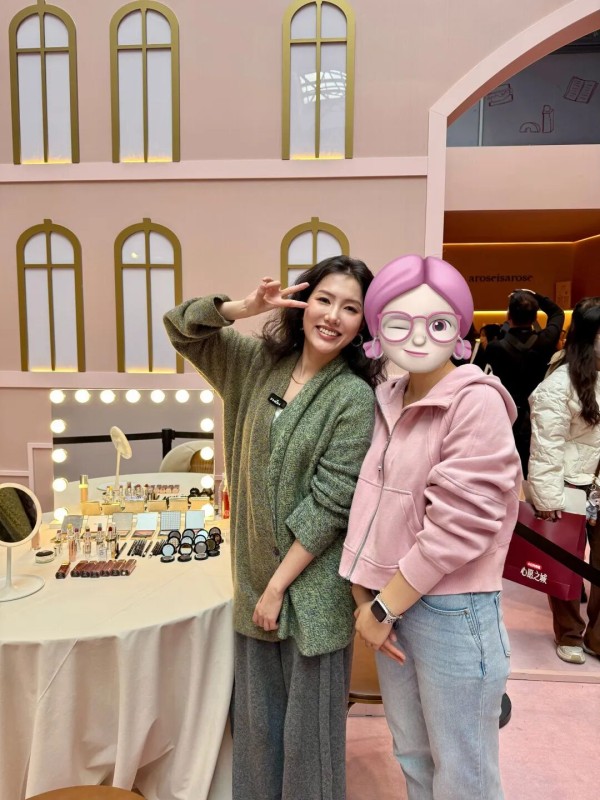 在其彩妆试色体验区,玫瑰编辑部的买手没有急着让我试色,而是先观察了我的肤色与状态,然后推荐了两款口红。交谈中,她告诉我之所以设置这个展区,是考虑彩妆在直播间镜头下呈现不够直观,线下真人试色也更具有参考性。