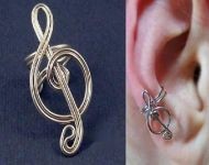 银线制作高音谱号耳饰 没有耳洞也可以佩戴 没有耳洞也可以佩戴的漂亮耳饰DIY,设计成高音谱号造型,优雅而又别致,感兴趣的MM抓来男朋友下命令吧(^o^)/~需要准备:18号首饰银线、剪线钳、尖嘴钳、芯棒。剪下约20cm长银线开始DIY。做好的高音谱号在芯棒上拧出环形,就可... 11-14