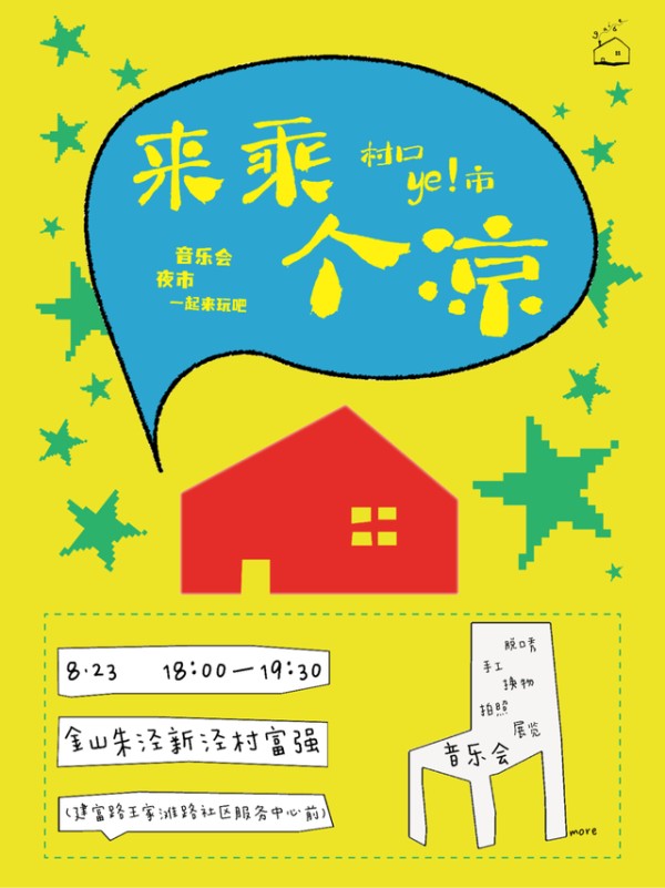 今年6月,一把旧椅子、一把吉他、一支话筒,新泾村村口的一场夏夜音乐会,在明明的轻声歌唱中启幕,《明天会更好》的旋律在村里回荡。8月,村口音乐会迎来“升级”,本地大学生自发来当志愿者,与林莉和明明共同策划,她们借来镇上手艺人制成的花灯,公共艺术伙伴“相宜绍庭艺术行动”又用竹子和旧物搭起了舞台。演出嘉宾既有从德国回来探亲的大提琴家,也有本地的音乐人。在玩法上,新增了手工DIY、套圈游戏,还拉上了小卖部一起,提供限定特调。夜幕降临,灯光亮起,照亮村民们好奇而愉悦的脸庞。这一次,最让明明难忘的,是散场后一位没有立即离去的老人。老人问:“以后还办吗?还想听你们唱。”几个月过去,明明仍对那一幕记忆犹新。