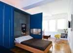 客卧设计在了客厅中,卧床同样隐藏在了暗藏玄机的墙壁之中,展开后的床头空间,更是增添了入壁式书架,这样一来,客人也可以在就寝前翻翻书籍助眠了。