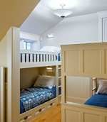 若是你家的客人特别多,特别是过年,或者远亲来访,都会出现这样的情况,那么客卧可以采用多床设计,双层床的是很不错的选择,如这款案例,虽然空间不大,但床却很多,床底位置还改造成了抽屉,增添收纳空间。