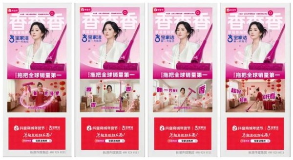 新年消费旺季来临,家居清洁用品迎来需求高峰。宝家洁精准把握营销节点,布局“线上+线下”全域营销矩阵,通过登陆新潮传媒实现线下品牌引爆,借力抖音商城年货节抢占线上流量红利,形成完整营销闭环,实现对目标受众的全域覆盖。