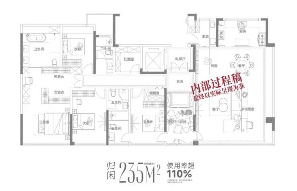 项目的刚需户型(90㎡、110㎡)空间利用率高达 85%,远高于行业平均水平(约 80%),主要体现在以下几个方面: