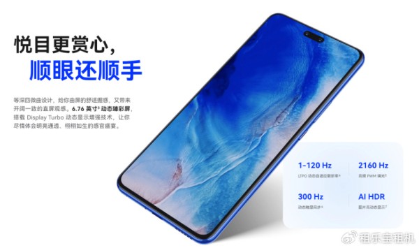 等曲四微曲屏:6.76 英寸动态臻彩屏,曲面弧度仅 1.5°,兼顾直屏的利落观感与曲屏的握持舒适,R 角设计贴合手掌,长时间使用不疲劳。