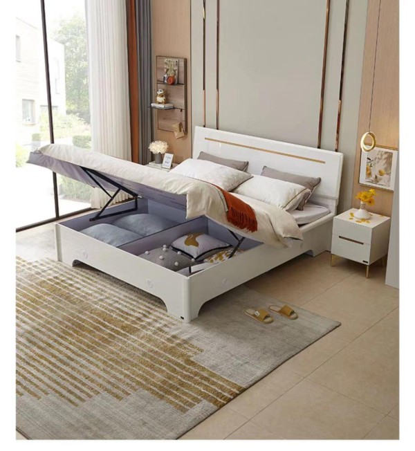 还有一处容易被大家忽略的收纳宝地——床下,选择自带收纳空间的高箱床,大容量储物床身,可以根据物品的使用频率分区归置,无需占用卧室的额外空间,换季衣物、被褥、行李箱等通通塞得下,轻松搞定卧室收纳~