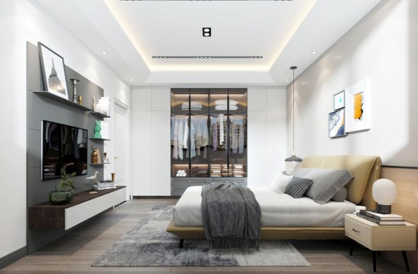 卧室装修注重整体性,所以在规划格局的时候较好按“方正”的布局来规划,避免有尖角或是斜边的形状,异形的卧室容易给人带来不安,造成神经压迫,从而增加人的精神负担。一般卧室的标配是床、床头柜、衣柜等,这些物品的摆放需要根据卧室的空间大小和家人生活习惯找较佳位置,避免动线交叉,手忙脚乱。