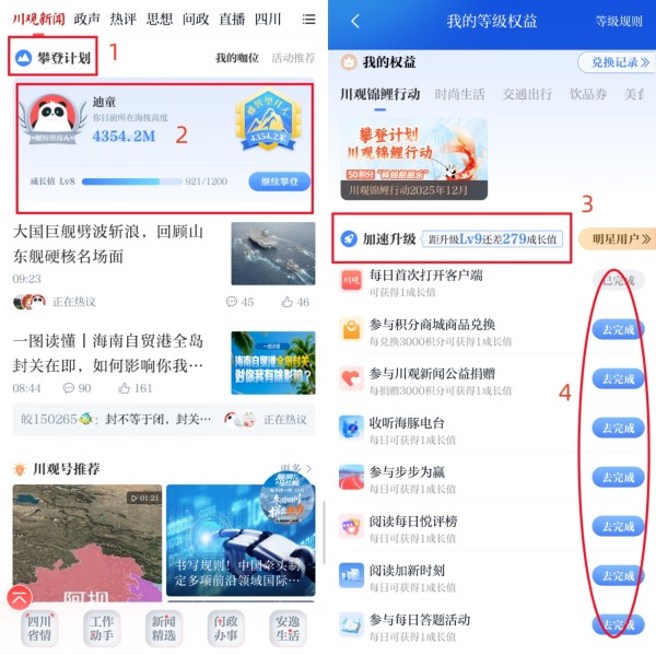 “攀登计划”于2023年9月22日正式上线,上线以来,川观用户的头像、称号、勋章会随着等级的增加升级。目前,最高等级的用户已经达到LV12,晋级到“贡嘎王者”。每一款权益产品,只要达到特定等级,即可免费兑换,大家加油攀登升级吧!