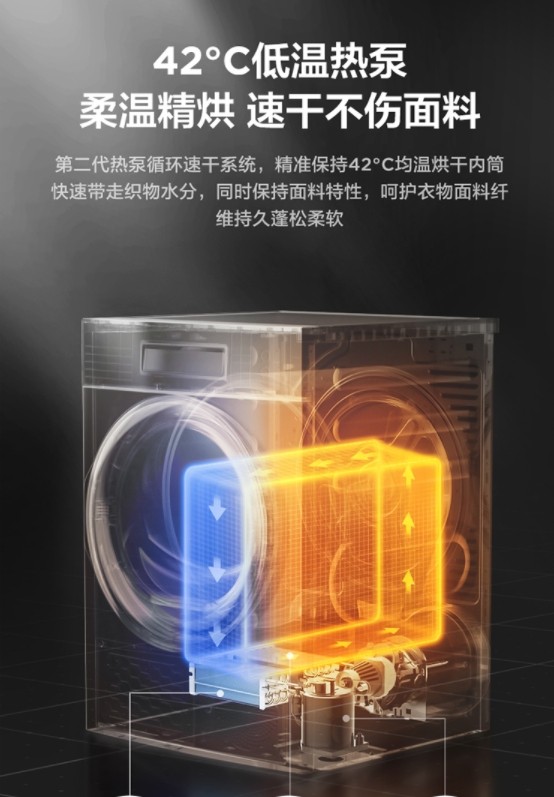 而针对梅雨季节衣物晾晒困难,美的初见系列洗烘套装采用了第二代热泵循环速干系统,精准保持42摄氏度均温烘干内容,快速带走织物水分,同时也能够保持洗涤衣物面料特性,呵护衣物面料纤维持久蓬松柔软。尤其是针对春冬换季时需要大量清洗的羽绒衣物,美的洗烘套装还提供了羽绒云朵洗烘技术,通过柔速水流和轻盈风速,结合正反柔转,减少这类衣物在洗涤过程中的结团问题,进而达到洗后依旧蓬松亲肤的效果。