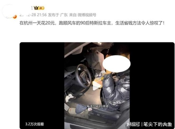近日,有网友爆料称,在杭州一天花20元,跑顺风车的90后特斯拉车主,生活省钱方法令人惊叹了!