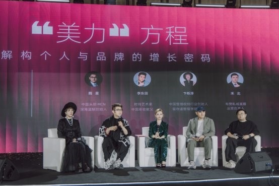 紧随其后的圆桌论坛环节将现场气氛推向高潮。在以《“美力”方程:解构形象美学经济的增长密码》为主题的对话中,论坛策划人、崆崆幸福美学创始人霏崆崆担任主持,与时尚艺术家、中国彩妆教父李东田、深海蓝鲸创始人魏星、留存道整理学院院长、中国整理收纳行业创始人卞栎淳、有赞私域运营负责人禾北四位行业关键嘉宾展开了一场深度跨界对话。