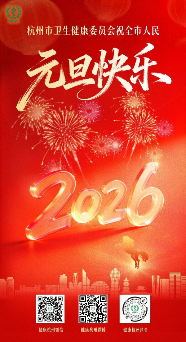岁序更替,华章日新。当钱塘江的潮声迎来2026年的第一缕晨光,我们怀着感恩与憧憬,向全市人民致以最诚挚的新年祝福!向坚守在健康守护一线的医务工作者以及所有关心支持杭州卫生健康事业发展的社会各界朋友,致以最崇高的敬意和最衷心的感谢!