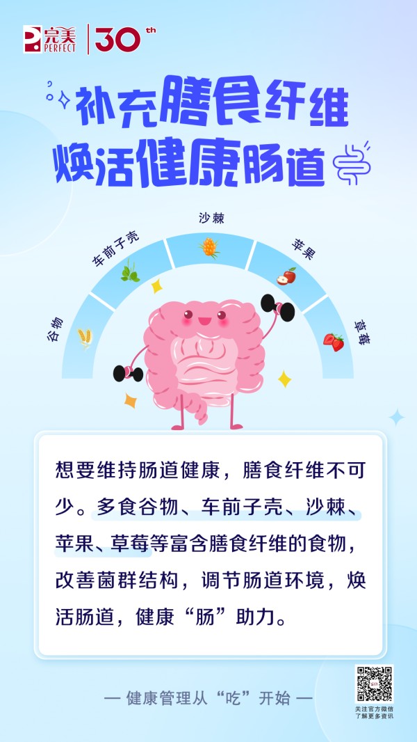 因此,饮食中不妨适当摄入膳食纤维,多吃谷物、车前子壳、沙棘、苹果、草莓等富含膳食纤维的食物,帮助我们促进肠道蠕动,通肠润便,增添肠道活力,从而更好地保持肠道健康。