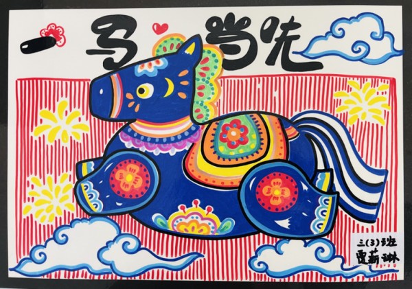除此之外,学生们利用卡纸、黏土、废旧材料等,制作了形态各异的立体小马、精美窗花、新年挂饰等手工作品,创意十足,巧思妙想尽显指尖智慧。
