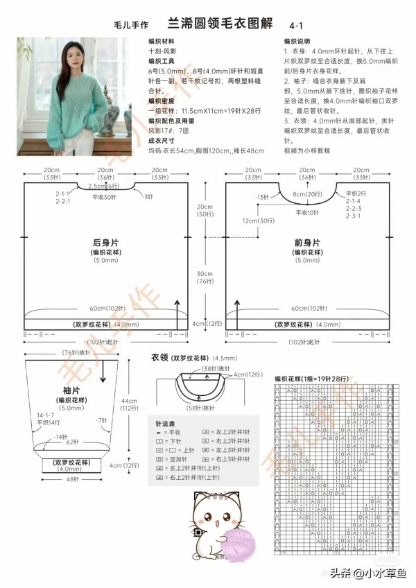 棒针编织一兰浠圆领毛衣(附图解)