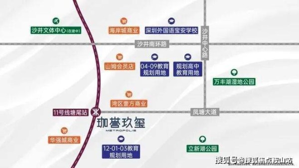 鸿荣源珈誉玖玺位于深圳宝安区中心路与凤塘大道交汇处,地处沙井核心生活区。沙井不仅在粤港澳大湾区发展轴心上,更是国家重大战略所在地,前海扩容受益者。项目周边交通便捷,地铁11号线塘尾站距离约300米,6站可达宝中,7站可达前海,便捷通达南山、福田等核心区域。