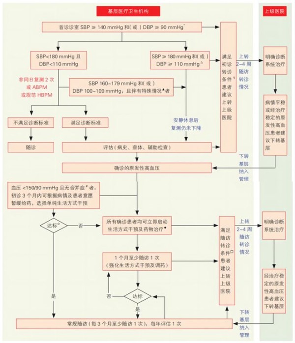 ①随访频率:对于血压达标的患者,建议至少每3个月进行1次随访;血压未达标的患者,则需每月至少随访1次。若患者符合转诊条件,应严格按照转诊要求进行操作。