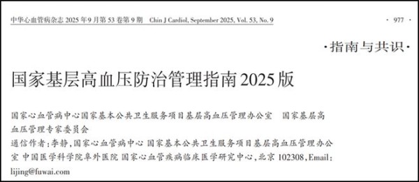 [2] 国家心血管病中心国家基本公共卫生服务项目基层高血压管理办公室,国家基层高血压管理专家委员会. 国家基层高血压防治管理指南2025版[J]. 中华心血管病杂志,2025,53(09):977-991.