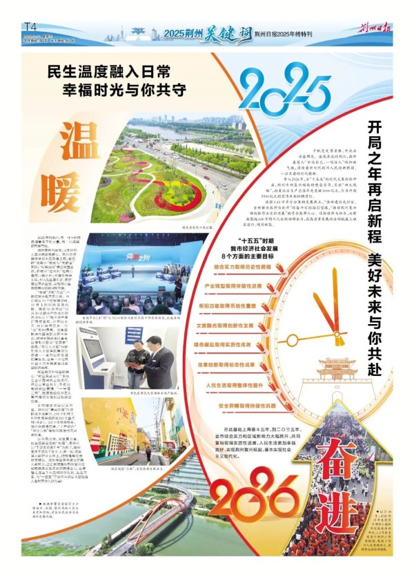 步入2026年,当“十五五”的时代大幕徐徐开启,荆州吹响复兴崛起的嘹亮号角,实施“四大战略”,向着地区生产总值率先突破5000亿元、全力冲刺5500亿元的宏伟目标铿锵前行。