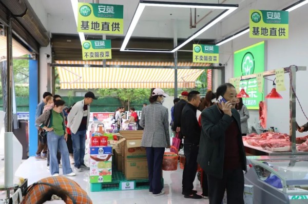 “离得近、品种多,价格也实惠,不用讨价还价,省心!”下午5点半,安菜社区生鲜超市里人头攒动,家住附近的市民严国珍把选好的蔬菜放在电子秤上,显示屏随即显示出总价。