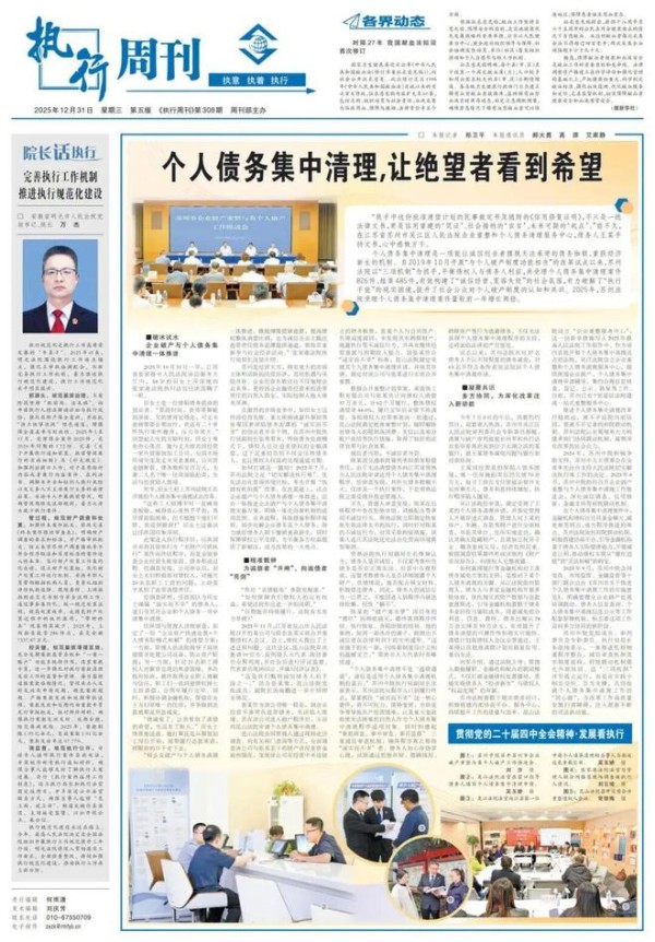 苏州中院党组成员、审判委员会专职委员、执行局局长朱劼纯表示,一体推进机制侧重程序整合,诚信审查机制筑牢制度底线,府院联动机制强化外部协同。这“三项机制”并非孤立运行,而是在实践中相互交织、互为支撑,共同绘就个人债务集中清理工作的“同心圆”,为改革工作高质量发展扫清障碍,注入源源不断的司法新动能。