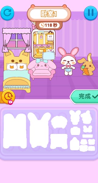 3、你要为角色搭配上合适的眼睛和配饰,搭配好了之后,点击完成,就能回到房间。