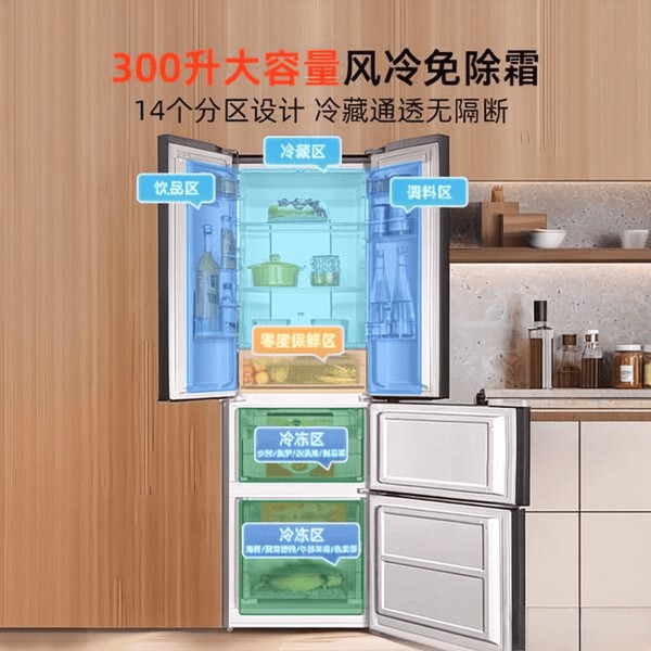 在容量方面,这款冰箱总容量达326升,其中冷藏区170升,冷冻区132升,还有专门的24升零度保鲜区,满足不同食材的存放要求。四门设计带来13个分区储存空间,每个区域都能独立调温,防止串味,留住食材的原汁原味。大空间的抽屉设计,方便存放长脚蟹、大龙虾等大块食材,拿取也更方便。