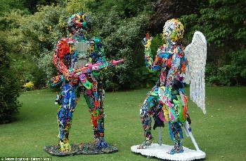 目前罗伯特制作出来的最大的两个模型分别是“玩具士兵”和“玩具天使”,每一件都花费了2个多月时间,用了数千块旧玩具和其它各种材料。他介绍说:“"玩具士兵"的灵感来自伊拉克战争。你可以看到,他身上装备非常齐全——脚下踩着航空母舰、身上背着手枪和弹夹还有无线对讲机。当然。手中还一定会拿着一挺卡拉什尼科夫冲锋枪。”