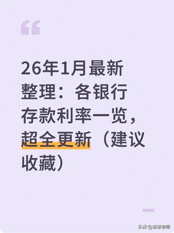 整理了2026年1月各类型银行公开利率(实际利率受地区、金额、客户类型影响,以网点或APP最新显示为准),按“安全便捷”和“高息收益”划分梯队,附适合人群和收益参考: