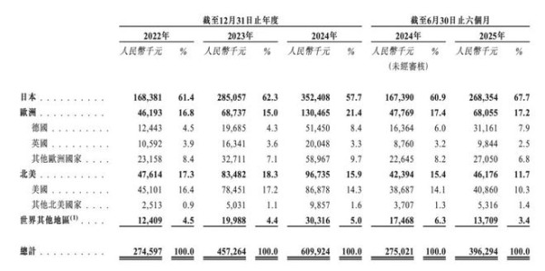 官方数据显示,2022年至2024年,日本市场为卧安贡献了约60%的营收;到2025年上半年,这一比例不降反升,达到67.7%,增速超过60%。