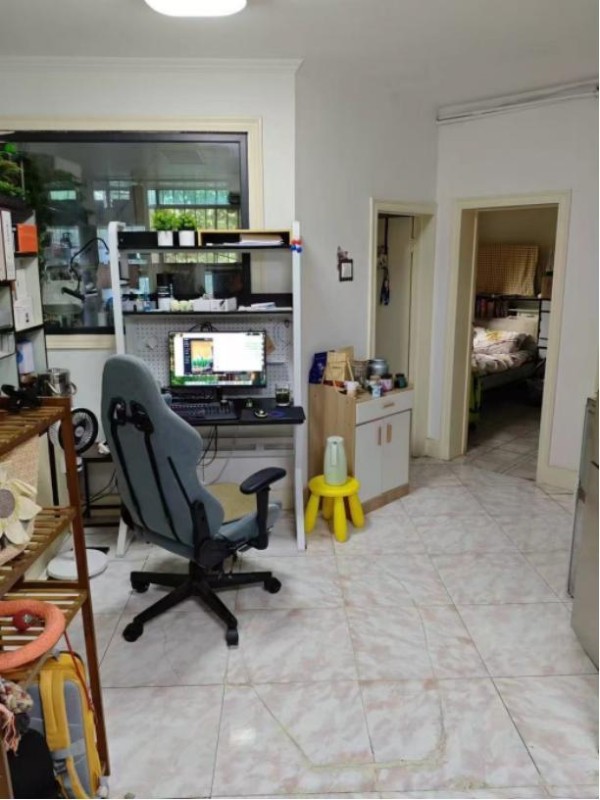 改造后,进门一侧设置女主人专属多功能收纳衣柜;靠窗打造整面梳妆台,镜面上翻抽屉收纳化妆品,搭配可移动智能补光镜,解决化妆光线不足与收纳杂乱问题。墙面大面积洞洞板可灵活切换拍摄背景,满足自媒体多元创作需求。三面书桌布局高度集约,使空间成为长期、高频使用的创作场所。