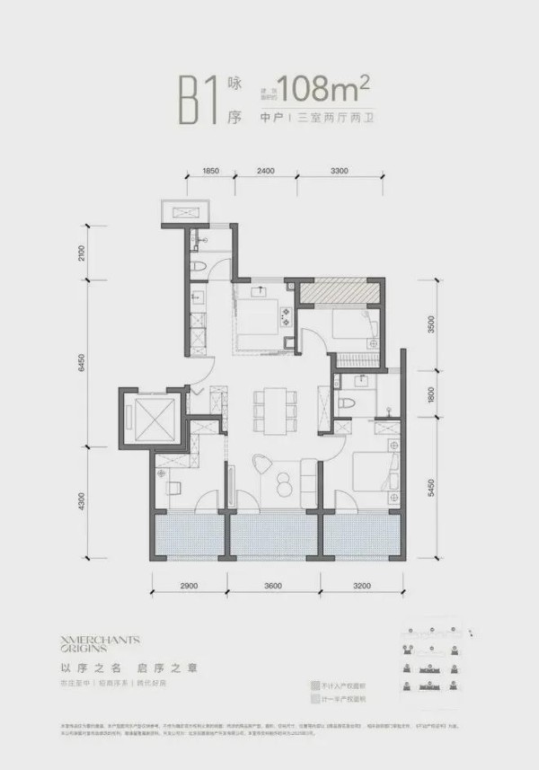 108㎡三居(共288套):南北通透,南向三面宽+宽景阳台,北向设备平台全赠送,赠送面积达21㎡。独立玄关和边角储物柜提升空间利用率。