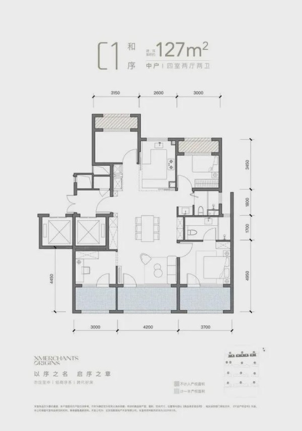 招商序主力户型为91-108㎡三居,127-165㎡四居,层高3-3.05米,一梯两户/两梯两户。针对刚需和改善型需求。项目得房率惊人,高达90%-97%,远超一般住宅项目。这主要得益于创新户型设计和赠送面积,如阳台半赠送、飘窗和北向设备平台全赠送等。