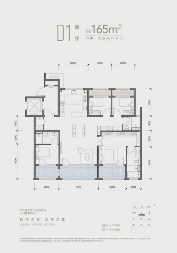 165㎡四居(共42套):改善终极之选,南向面宽14.5米,5.1米横厅、独立电梯厅+外玄关+南向双套房设计。中西双厨设计搭载西厨岛台。