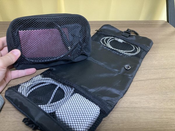 帶有掛勾是另一個強大的亮點,即使在空間狹窄的地方也能輕鬆吊掛收納。出國旅行時,用來收納化妝品或牙刷等日用品,掛在飯店洗手台旁的毛巾架,視覺超級清爽!它能整袋收進包包裡,想去洗手間補妝時,只需拆下中間的小袋帶走,便利性真的無可挑剔。