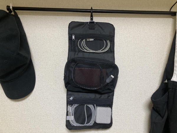MUJI無印良品「聚酯纖維吊掛可拆收納袋」990日圓(含稅) 我入手了MUJI無印良品的「聚酯纖維吊掛可拆收納袋」,內建了大、中、小三個不同尺寸的空間,最特別的是中間那個網袋收納包可以單獨拆下。除了可以當作盥洗包,我還喜歡把它當成電子配件包,讓充電器、行動硬碟、滑鼠各就各位,不再糾結成一團。