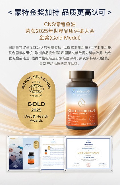 在情绪健康日益受到重视的当下,科学的营养干预已成为都市高压人群应对情绪困扰的重要路径。从情绪营养学视角出发,精准补充关键营养素,是改善抑郁倾向、提升情绪韧性的核心逻辑。cns情绪鱼油以严谨的科学配方为基础,将便捷性与有效性结合,为长期处于高压力状态的都市人群提供了一种基于该思路的营养补充选择。在快节奏的生活中,不妨借助科学的营养管理,保持健康情绪,以更坚韧的心态应对生活挑战。