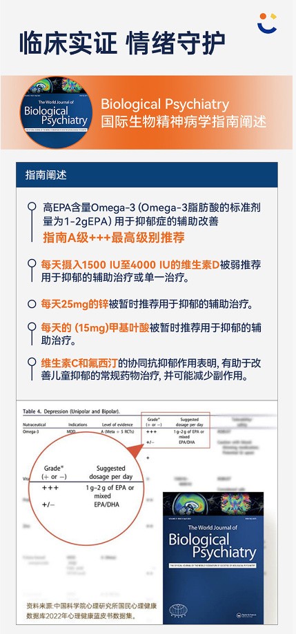 cns情绪鱼油精准契合情绪营养学的干预思路,将90%高纯度EPA与活性叶酸作为核心成分。与普通叶酸不同,cns情绪鱼油中的活性叶酸无需经体内代谢转化,可直接被人体吸收利用,能快速补充高压人群的营养缺口,为改善抑郁相关情绪问题提供直接支持。世界生物精神病学会联合会临床指南明确推荐,Omega-3脂肪酸可作为抑郁症的辅助治疗方法,其中高纯度EPA的作用尤为关键。活性叶酸和EPA的协同作用,从神经递质合成与神经抗炎两个核心通路发力,助力应对高压力人群的情绪困扰。