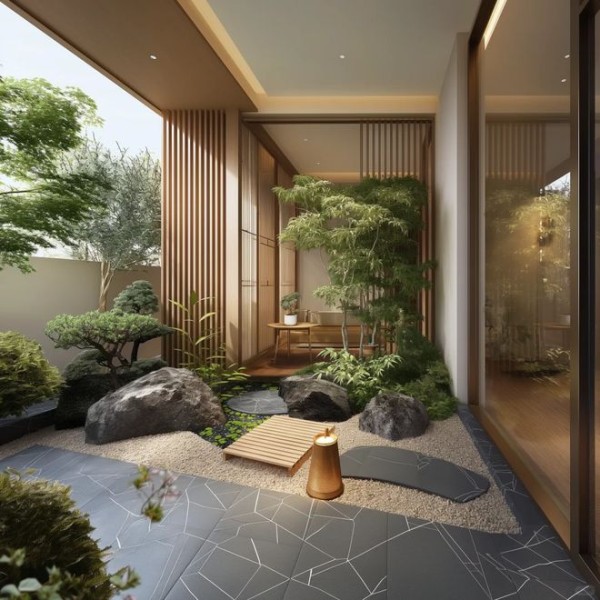 网友@妮妮:阳台变身小院后,立刻充满了绿意和生机,让人仿佛置身大自然,特别宁静放松。大小石头的自然铺设,不仅美化了地面,还自然地形成了一条小径,引人走进去享受这片小小天地。