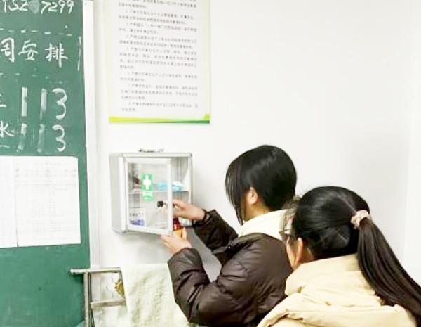 除教师办公室外,部分公共区域也设立了爱心小药箱,目前,全校共投放21个药箱,由物业人员巡检补充,确保医疗物资“随用随新”。