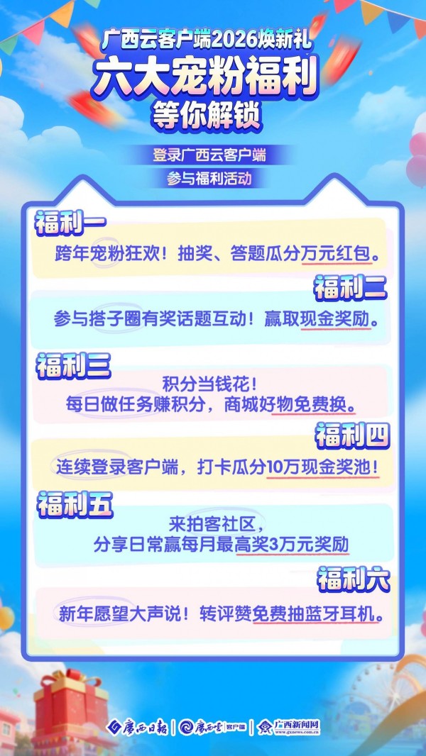 10万+现金奖励!速来广西云抢六大宠粉福利,登录就有礼!