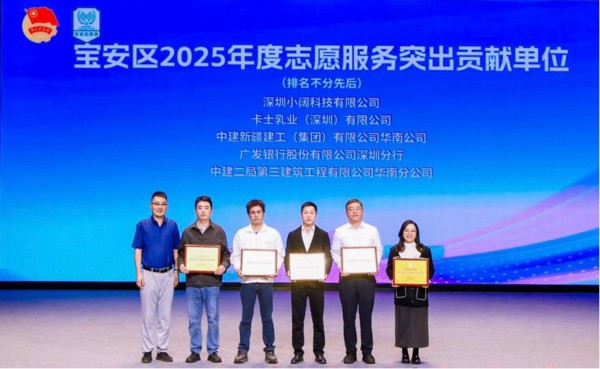 广发银行深圳分行荣获宝安区2025年度“志愿服务突出贡献单位” 广发银行深圳分行荣获宝安区2025年度“志愿服务突出贡献单位” 近日,广发银行深圳分行党委委员、行长助理一行4人受邀出席深圳市宝安区十五运会和残特奥会志愿服务总结大会暨2025年“12·5国际志愿者日”主题活动。在本次大会中,深圳分行荣获宝安区2025年度“志愿服务突出贡献单位”称号,成为唯一获此殊荣的金融机构。 深圳新闻网 2025-12-25