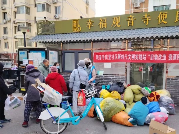 观音寺南里社区新时代文明实践站开展“旧物改造 资源回收”垃圾分类活动