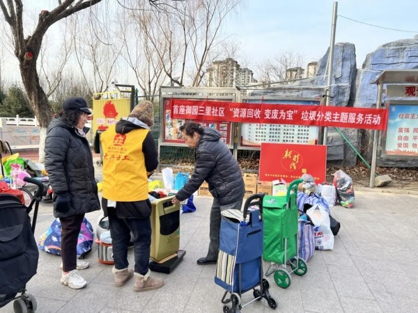 首座御园三里社区新时代文明实践站开展“资源回收 变废为宝”垃圾分类活动