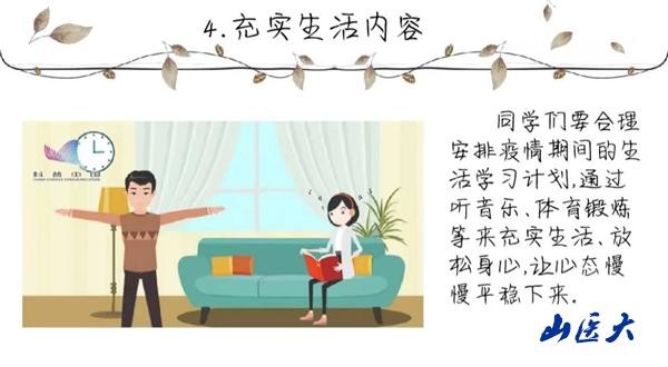 活动以腾讯会议的形式开展。活动中,孙瑞苗介绍了目前全国和山西疫情形势,强调要严格遵守学校疫情防控规定,筑牢校园抗疫防线。同时,以图片和视频的形式分享了近期同学们线上学习情况和体育锻炼的精彩时刻。郑舒予和石宝鼎两位同学先后交流分享了自己疫情封校下充实而规律的生活日常。孙瑞苗向同学们普及了心理健康疏导的小技巧,以增强同学们的心理健康意识,保持乐观积极的心理状态。