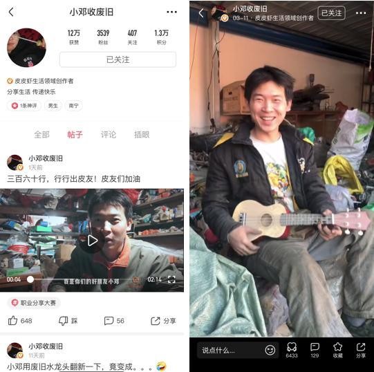 皮皮虾生活领域创作者“小邓收废旧”