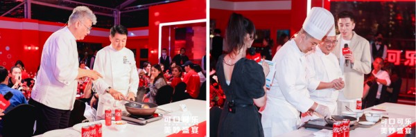 在首场北京晚宴中,可口可乐请到了「大董」创始人董振祥与好友孙宪厚先生操刀晚宴,两人创造性地将可口可乐入菜,唤醒现场嘉宾们的味蕾。来到上海晚宴现场,可口可乐邀请到中国知名米其林二星餐厅吉品轩总厨李伟携手好友——拥有超过 38 年粤餐烹饪经验的吉品轩顾问蔡朝晖,共同打造专属菜单。