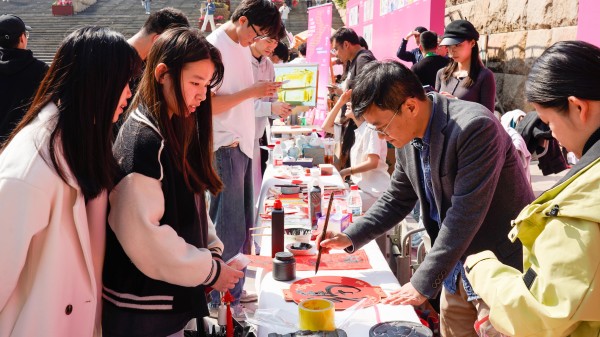陈锴生介绍,挥春是广美多年来的传统活动,老师们都乐于通过笔墨与师生交流。“今年的活动更有意义,学校宣传部牵头组织我们走出校门,和兄弟院校联动,打造艺术市集。”他表示,这样的校际交流,不仅让广美师生的创意作品被更多人看见,也搭建起了传统文化传播的桥梁,让艺术的魅力在高校间流转。