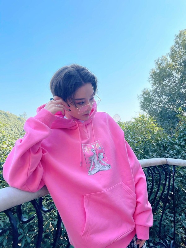 秋季来了,如果你觉得T恤不够保暖,也可以试试卫衣的搭配,它的优势就在于保暖性强、质地柔软,会为你带来很舒适的体验,张馨予非常喜欢粉色系的卫衣,看起来颇有少女感,如果融入了连帽的剪裁,会让你减龄十岁不止,中年女性也能穿。